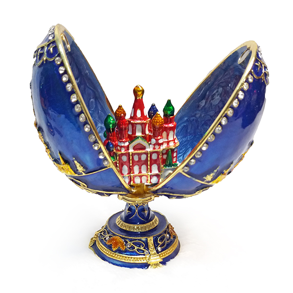 Яйцо-шкатулка под Фаберже, внутри храм Спас на Крови. Изготовленна из металла. Украшено стразами.
