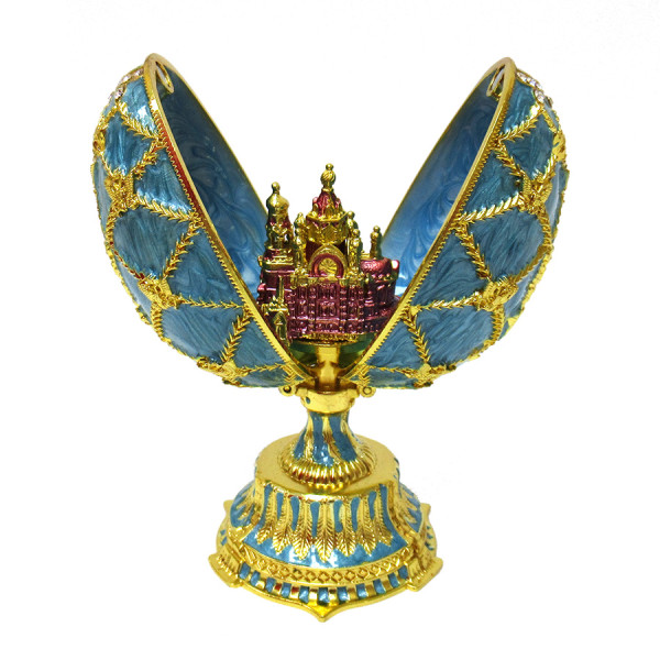 Яйцо-шкатулка под Фаберже. Изготовлено из металла. Украшено стразами. Внутри фигурка собор Спас на Крови, на магните.