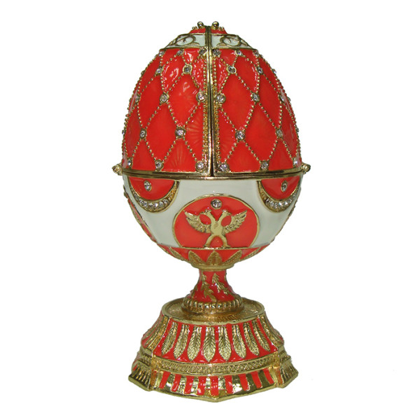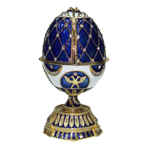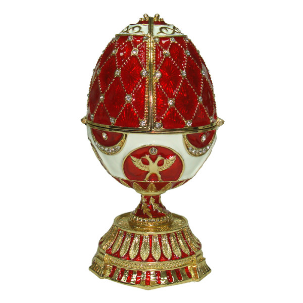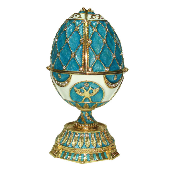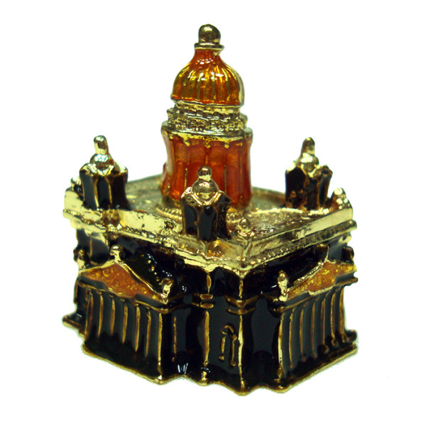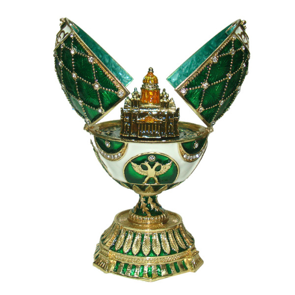Яйцо-шкатулка под Фаберже внутри с Исаакиевским собором. Изготовлено из металла. Украшено стразами.