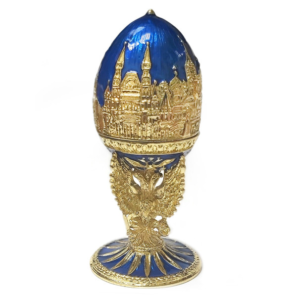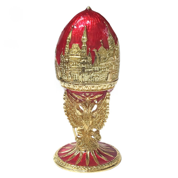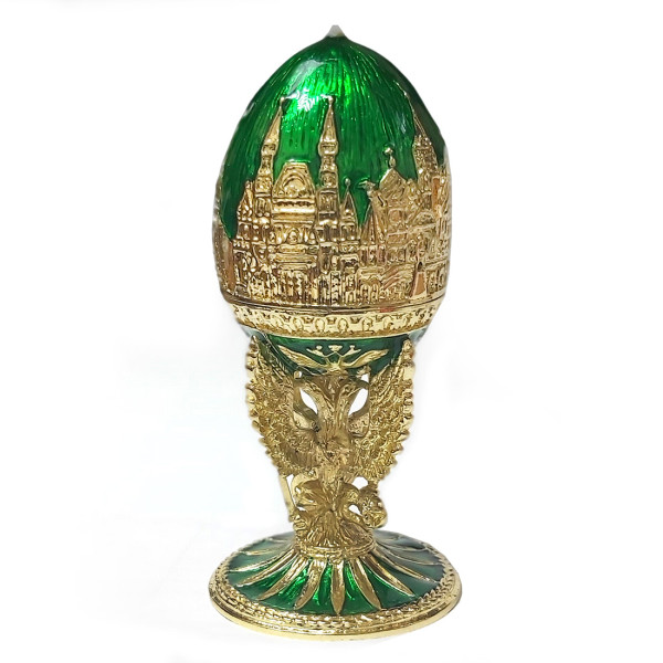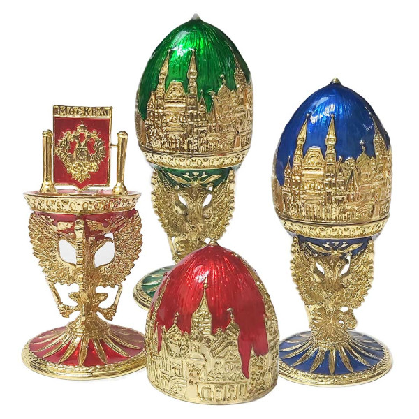 Яйцо-шкатулка под Фаберже внутри с гербом. Изготовлено из металла, покрыто цветной эмалью. Украшено стразами.