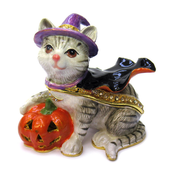 Шкатулка под Фаберже "Кот Хэллоуин серый" №BP3283K1