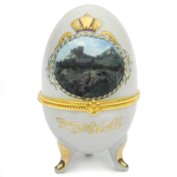 Яйцо-шкатулка керамическая с изображением Генуэзской Крепости в Судаке и надписью Крым.